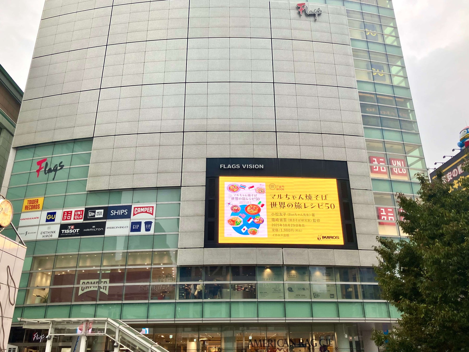 8月8日の予約開始以降、WEBやラジオ番組など各所で取り上げられ、大きな反響をいただいておりますが、さらに本書の発売を前に新宿南口フラッグスビジョンにて広告動画放映**もスタートしました。また11月1日からは全国の未来屋書店さんにて、発売50周年を迎えるマルちゃん焼そばとのコラボキャンペーンが実施されますが、そちらの店頭での展開も決定。より多くの人の目に触れる機会を得て、さらなる話題化を目指します。