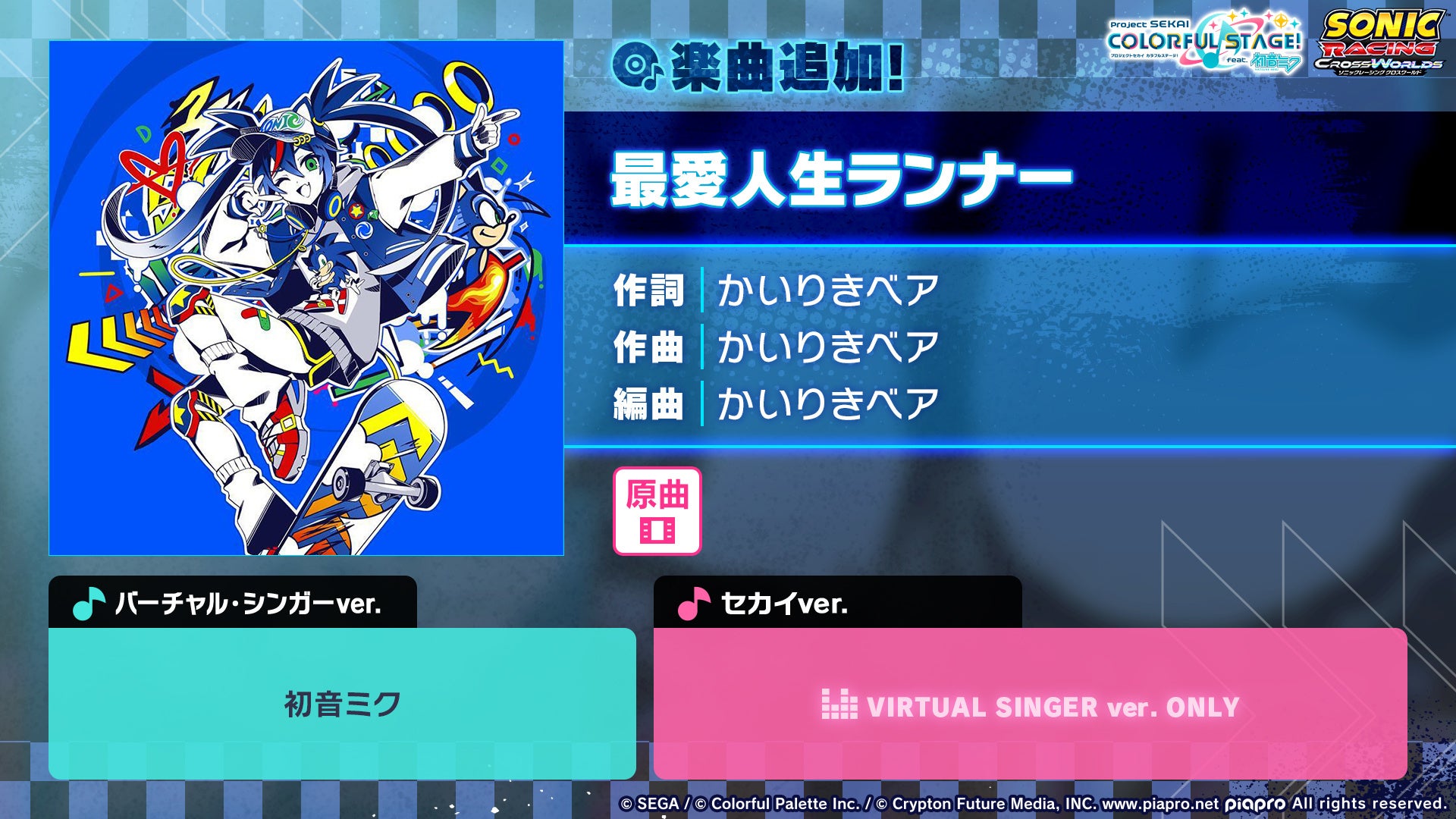 ■『ソニックレーシング クロスワールド PJ ONSOKU』との楽曲タイアップ開催決定!