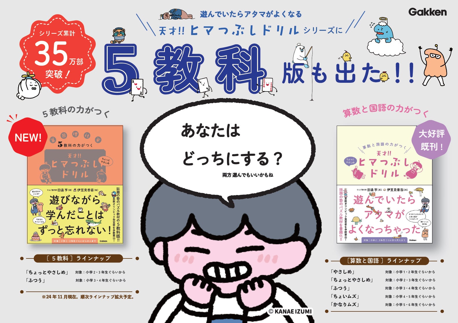株式会社 学研ホールディングス(東京・品川/代表取締役社長:宮原博昭)のグループ会社、株式会社 Gakken(東京・品川/代表取締役社長:南條達也)は、2024年11月21日(木)にシリーズ累計35万部を突破した大人気シリーズの最新作『5教科の力がつく 天才!!ヒマつぶしドリル ちょっとやさしめ』『(同)ふつう』の2冊を発売いたしました。