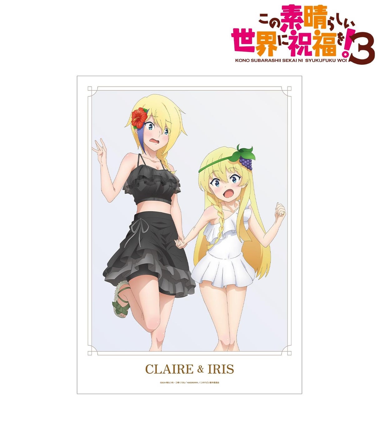 ダクネス、クレア、アイリスのイラスト、キャラクターの名前をA3サイズのマット加工されたポスターに仕上げました。