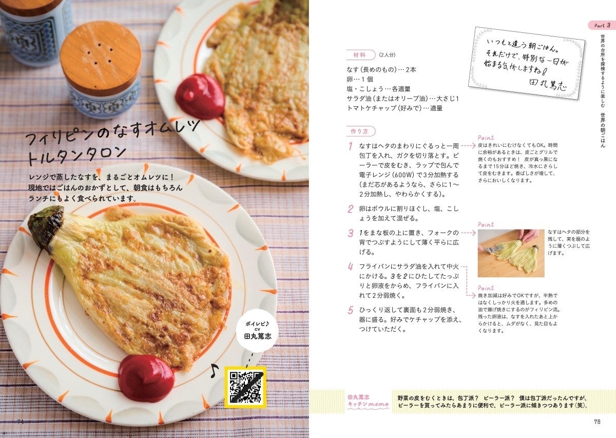 「フィリピンのなすオムレツ トルタンタロン」は、なすと卵があれば作れるので初心者にもおすすめです! 田丸篤志さんの声もやさしくて癒されること間違いなしです。