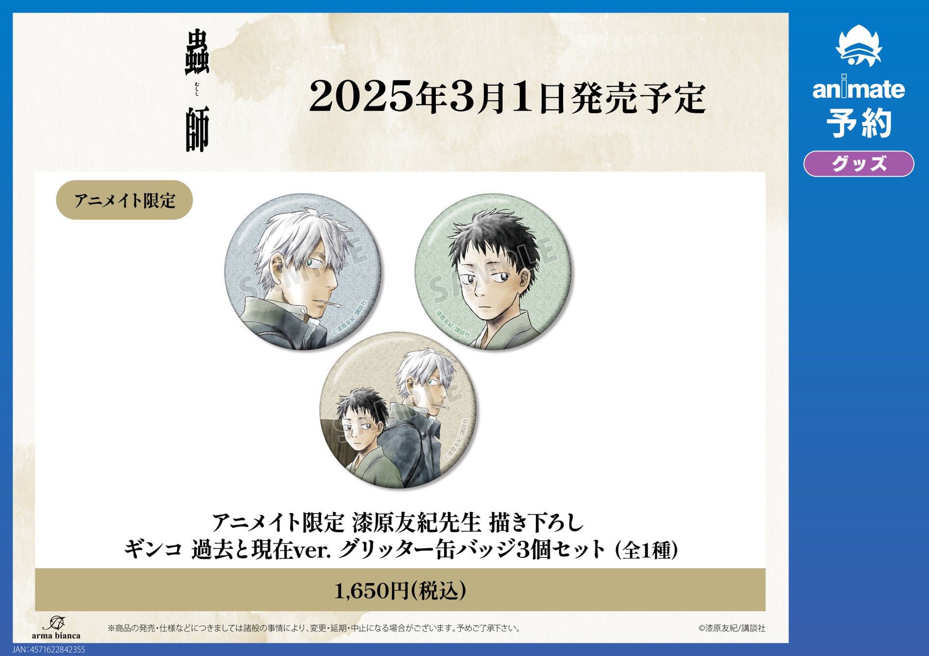 ▼アニメイト限定 漆原友紀先生 描き下ろし ギンコ 過去と現在ver. グリッター缶バッジ3個セット(全1種)