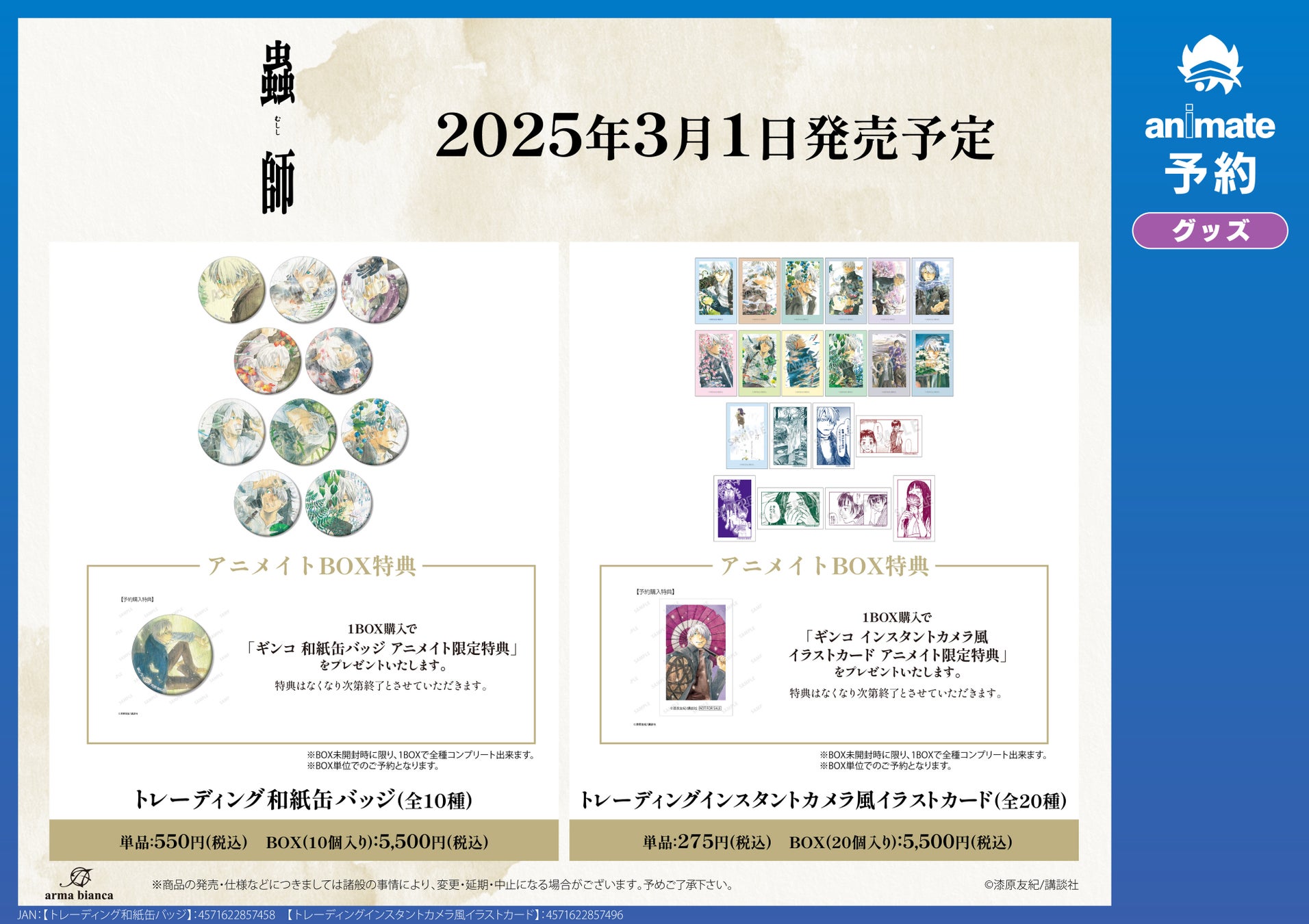 ※3月1日(土)より予約開始予定のECサイト「AMNIBUS」では、BOX購入特典として「ギンコ 和紙缶バッジ AMNIBUS限定特典」を予定しております。