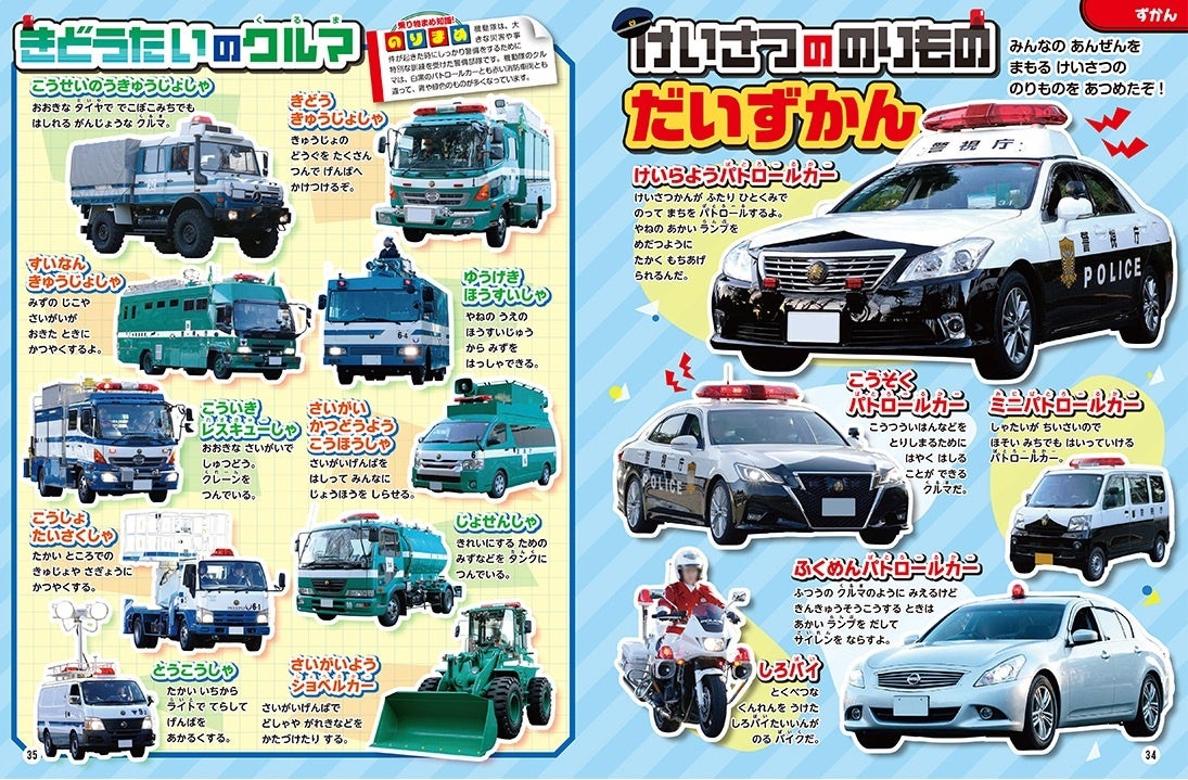 ★本誌では、警察ののりもの図鑑ページも! トミカ、プラレール、シンカリオンやホットウィールなど人気ものも登場!