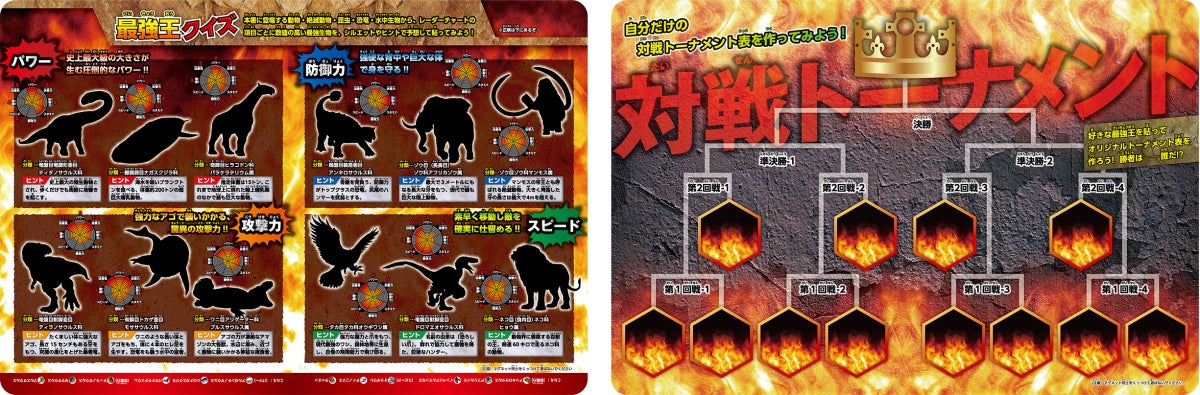 「現実世界編」では、動物、恐竜、絶滅動物、昆虫、水中、空中の最強王たちが、「空想世界編」では、神話、英雄、ドラゴン、妖怪、幻獣、悪魔の最強王たちが登場する、繰り返し遊べるマグネットブックになりました!