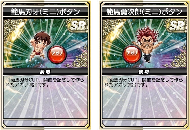 「範馬刃牙1」「範馬勇次郎1」など、全5種の進化型SPキャラ(SSR)が登場します。
