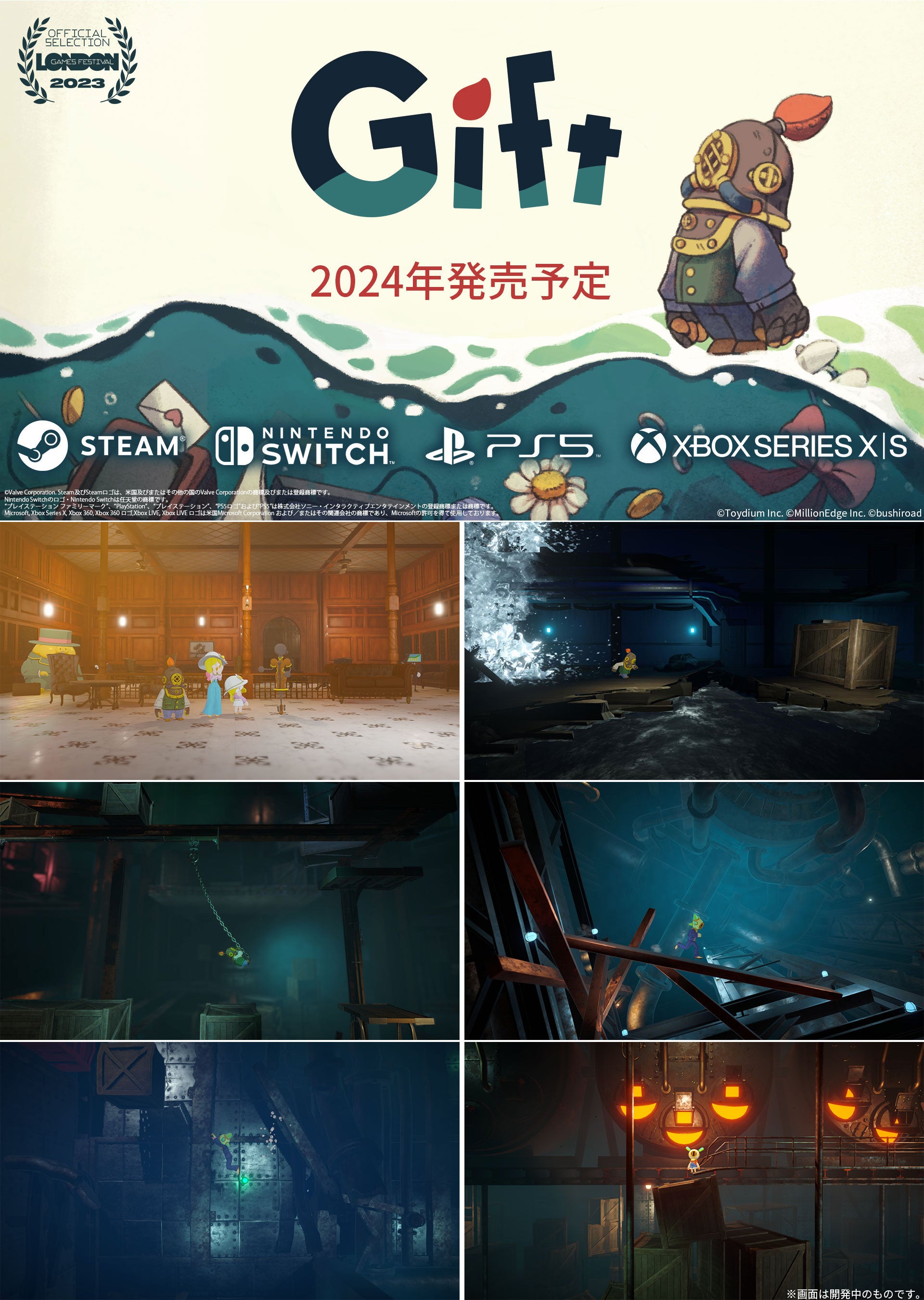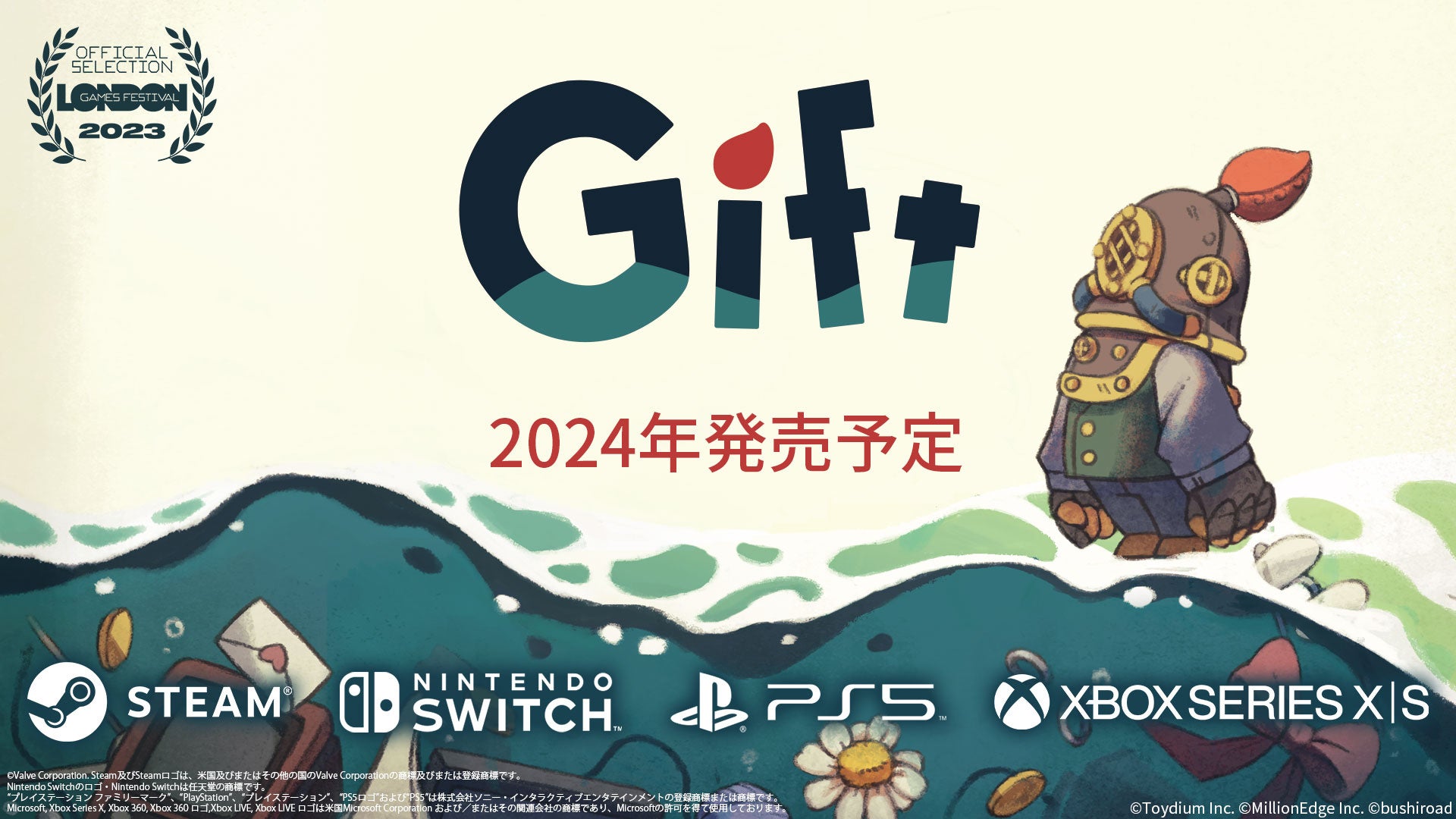 ブシロード、トイジアム、Million Edgeの3社が手がける2024年発売予定のインディーゲームタイトル『Gift』の情報を、7月27日(木)に開催しました「ブシロードゲームズ発表会」にて発表し、ティザーサイトを公開致しました。