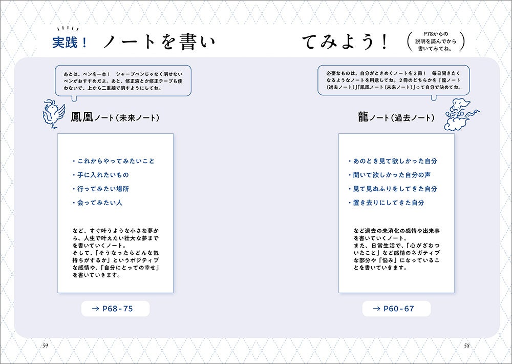 自分で自分を承認するための方法は、ペンとノートを用意して本書で紹介している龍ノート(過去ノート)を書くことです。