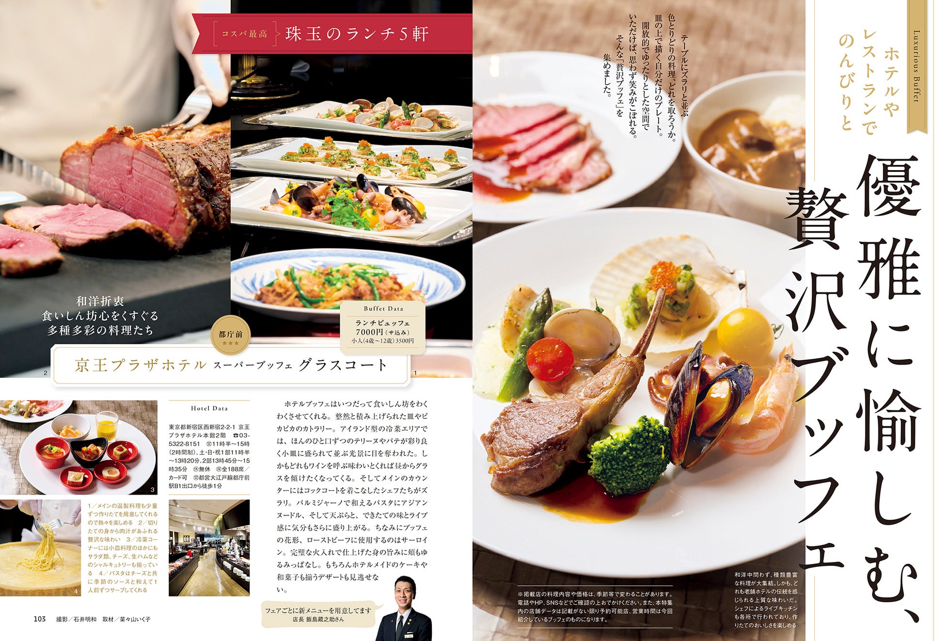 テーブルにズラリと並ぶ色とりどりの料理、どれを取ろうか。皿の上で描く自分だけのプレート。開放的でゆったりとした空間でいただけば、思わず笑みがこぼれる。そんな「贅沢ブッフェ」を集めました。