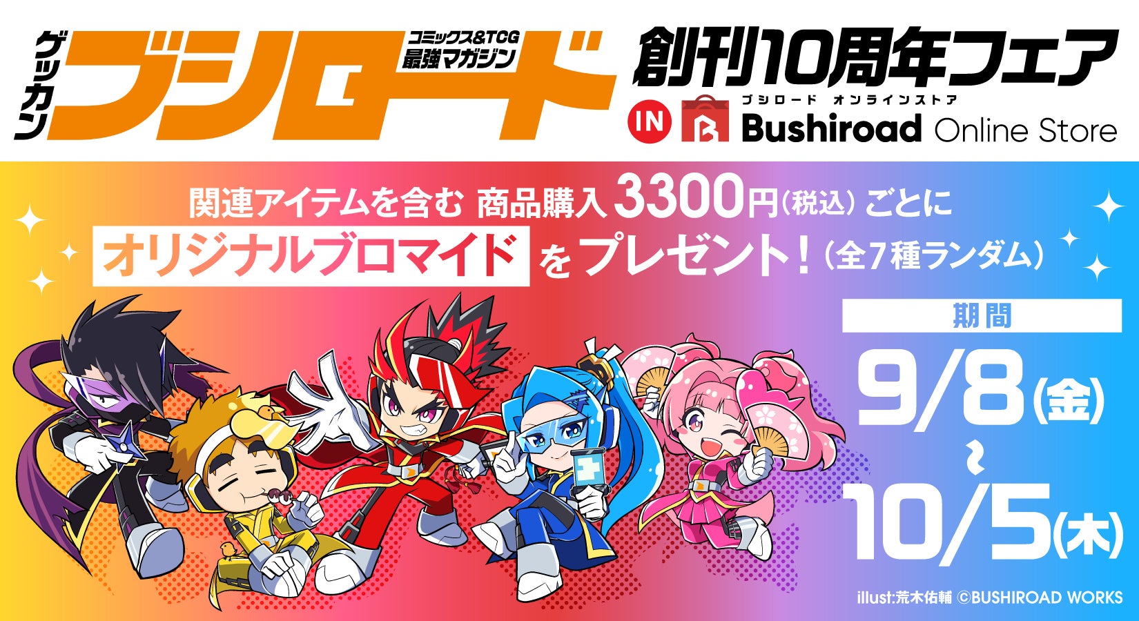 フェア期間中、ブシロードコミックス1冊お買い上げごとにオリジナルランダムブロマイド(全7種)」を1枚プレゼント!