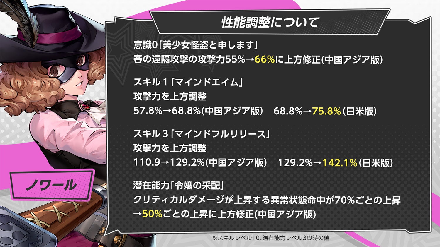 『P5』から新たな★5怪盗「奥村 春」が、特定の怪盗の出現確率がアップする“PICKUP怪ドル契約”に登場します。専用★5武器「ラストクォーター」は、“武器補給 無音の硝煙”で手に入ります。