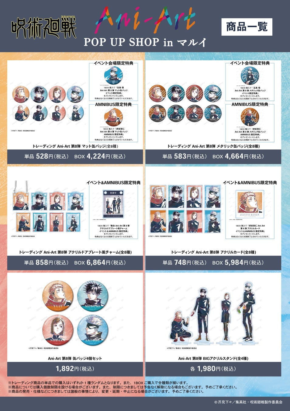 【TVアニメ「呪術廻戦」 Ani-Art POP UP SHOP in マルイ内へのご案内について】
