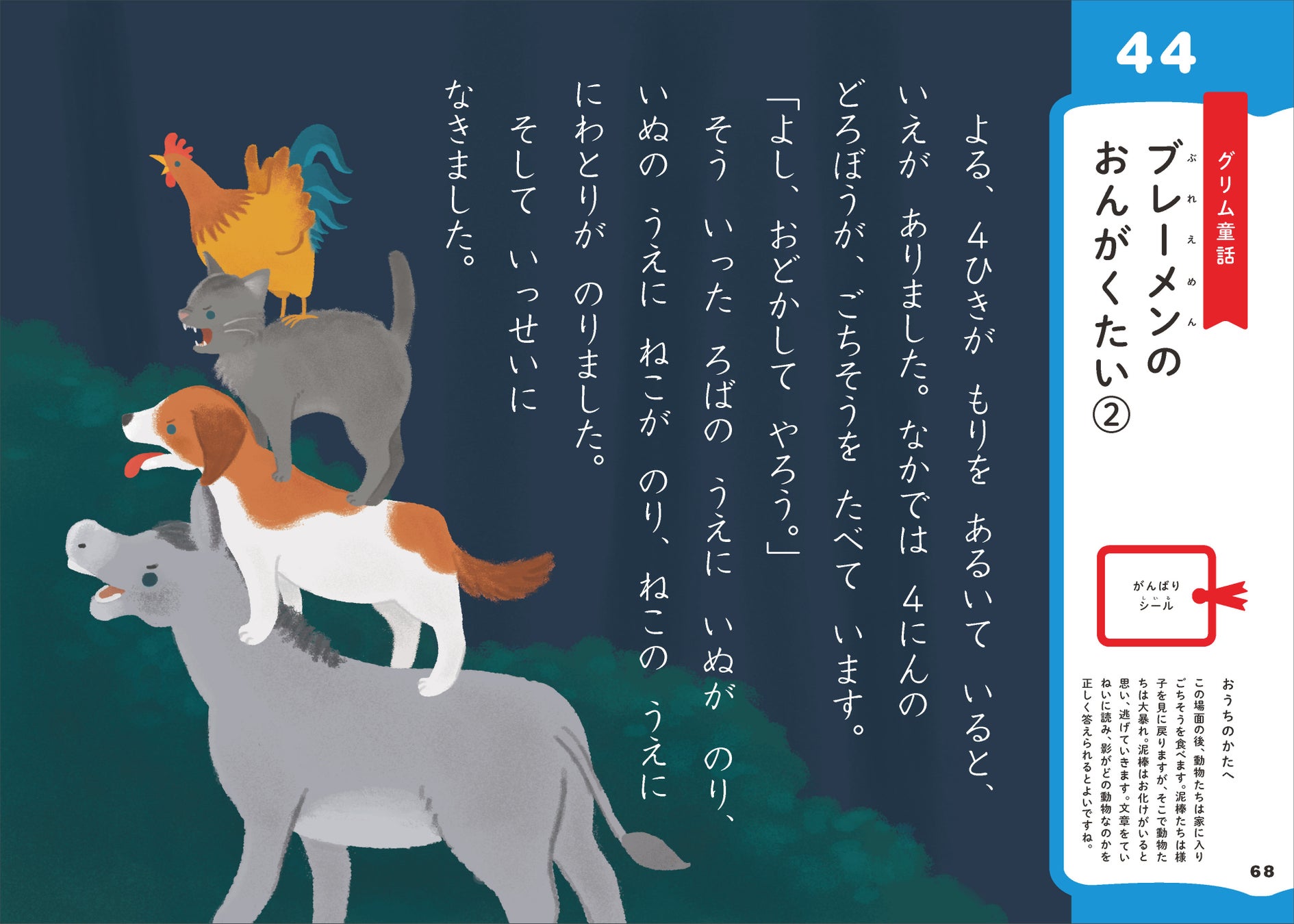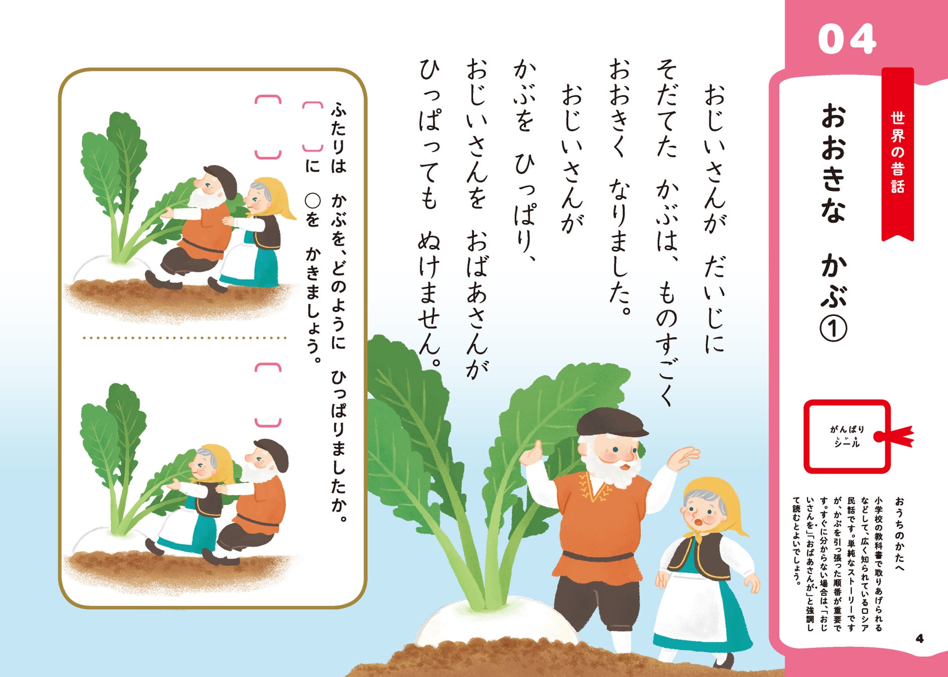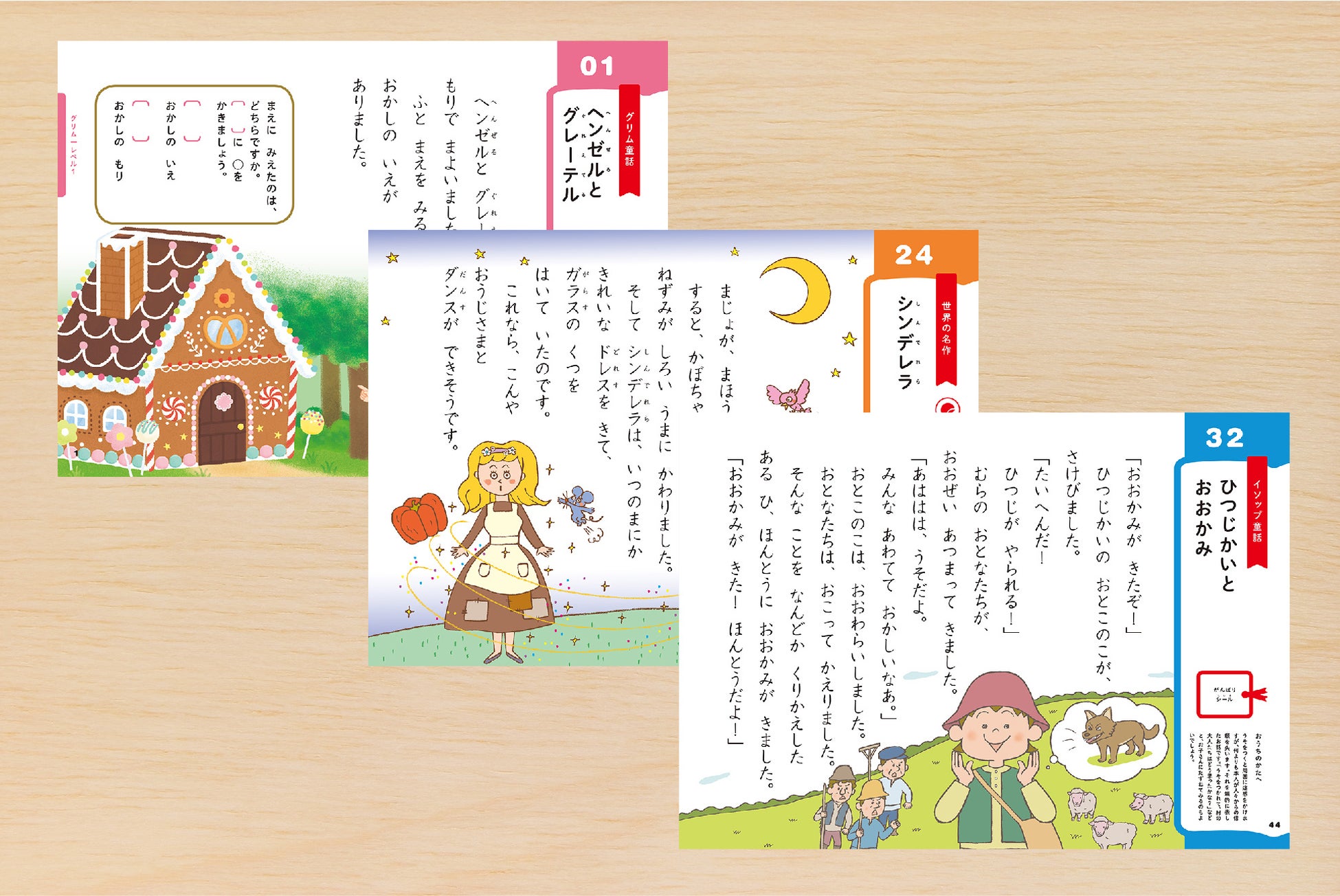 「日本昔話」「イソップ童話」「グリム童話」など、一度は読んでおきたい名作を多数収録しました。絵本のような世界観で、スモールステップで楽しく「読解力」をアップ。文章をていねいに読む習慣も身につきます!