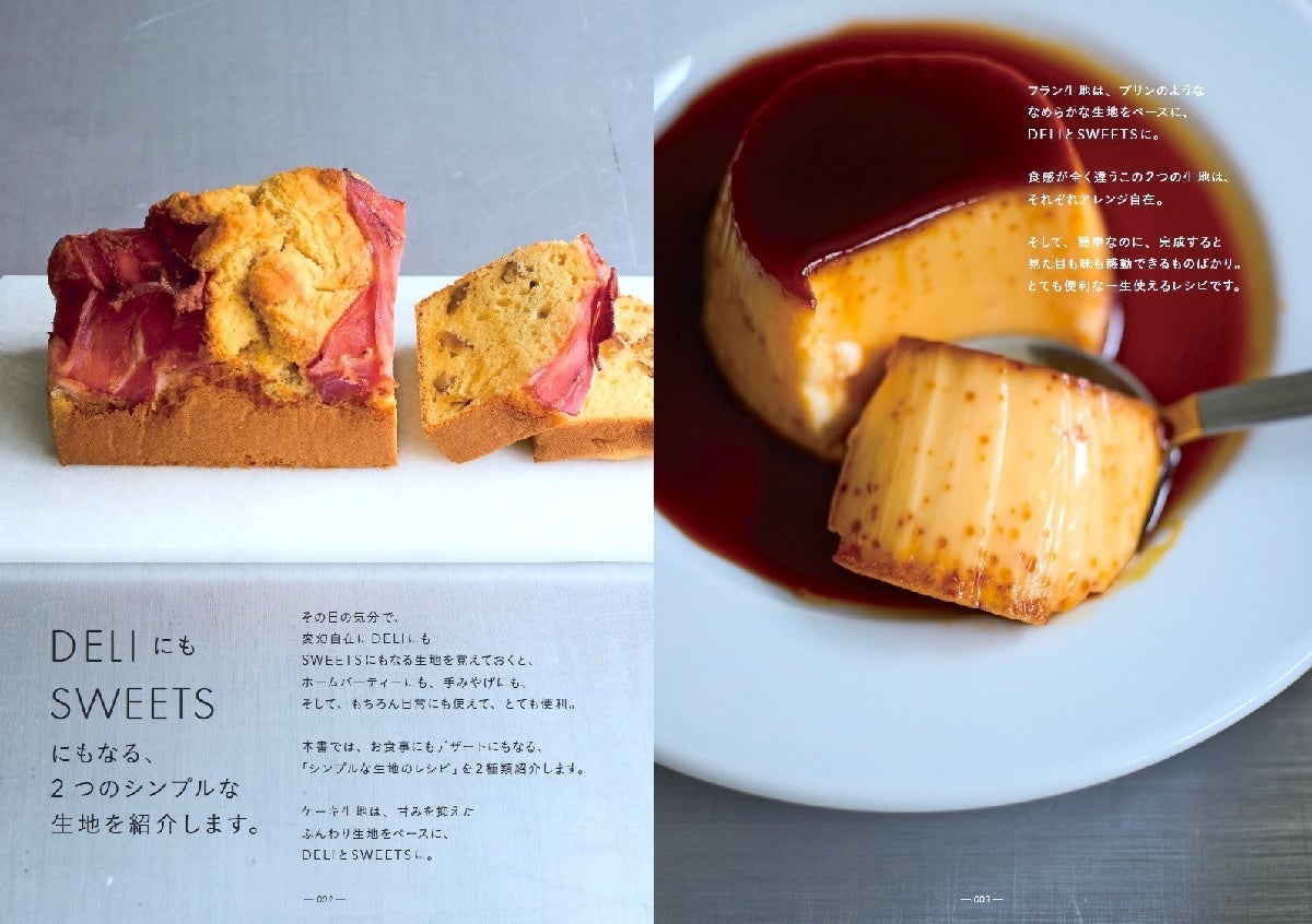 本書では、この2種類のレシピをベースに、それぞれデリとスイーツのレシピを展開。簡単なのに、完成すると味も見た目も感動できるものばかり。ホームパーティーや手土産にぴったりなとっておきのひと品から、お手軽な朝ごはんやおやつまで、一冊あれば一生使える便利なレシピが満載です。