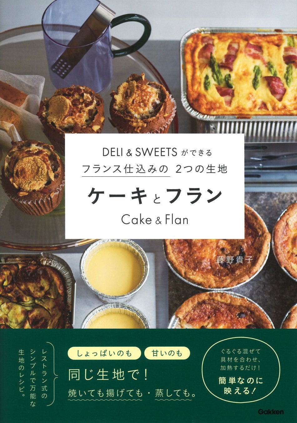 小麦粉がベースのケーキ生地と卵がベースのフラン生地。食感のまったく異なる2種類の生地をベースに、それぞれしょっぱいデリと甘いスイーツのレシピを展開。簡単に作れて、見た目も味も感動できるものばかり!