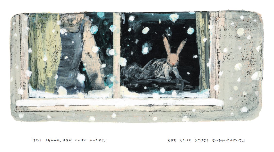 夜中からしんしんと雪が降り積もり、園がおやすみになったうさぎのぼく。遠くに仕事に出ていたパパは、雪で帰って来られなくなり、今日はママと二人きり。