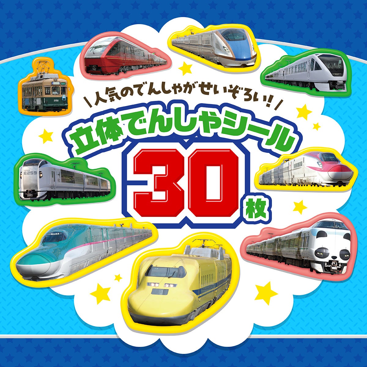 ■新幹線、特急、大人気車両を網羅! ぷっくりふくらんだ「でんしゃ」シール30枚を、はってはがして何度も遊べる