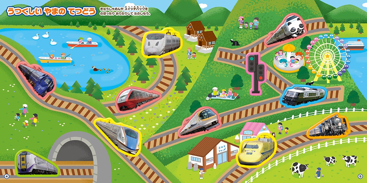 想像がふくらむバラエティ豊かな場面で、電車あそびがたっぷり楽しめます!