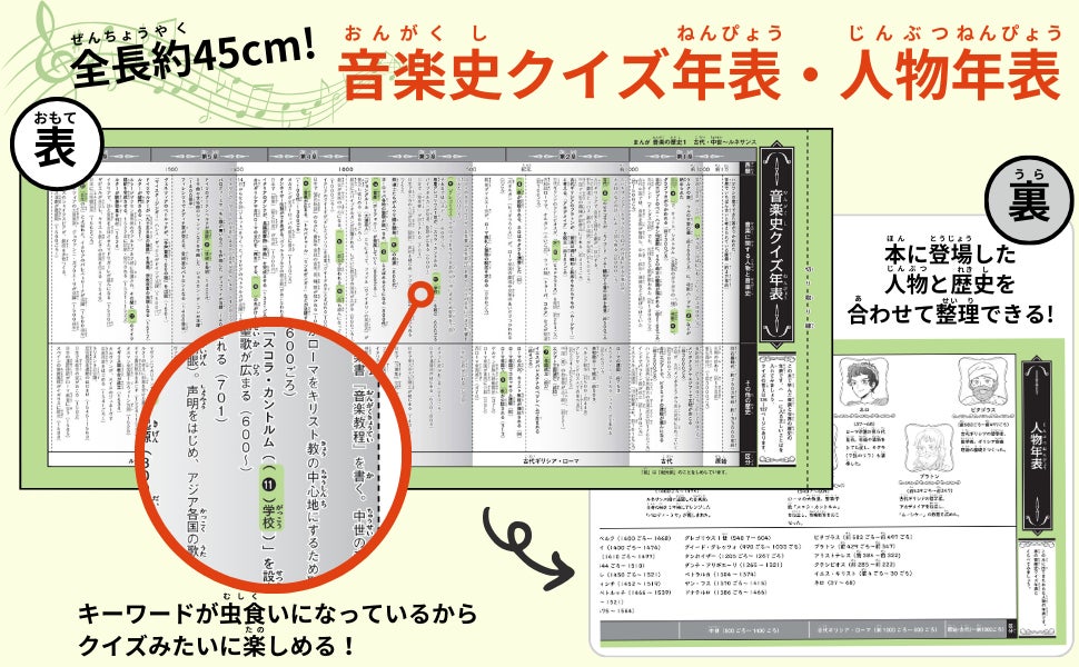 ●全長約45cm! 1冊丸ごと整理ができる【音楽史クイズ年表・人物年表】つき