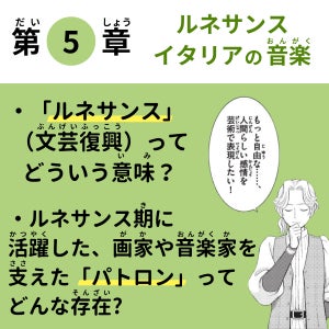章ごとに【まんが→年表→解説】がセットになっています。まんがで音楽史の全体を理解し、年表で情報を整理、そして充実した解説で知識を深掘りできます。