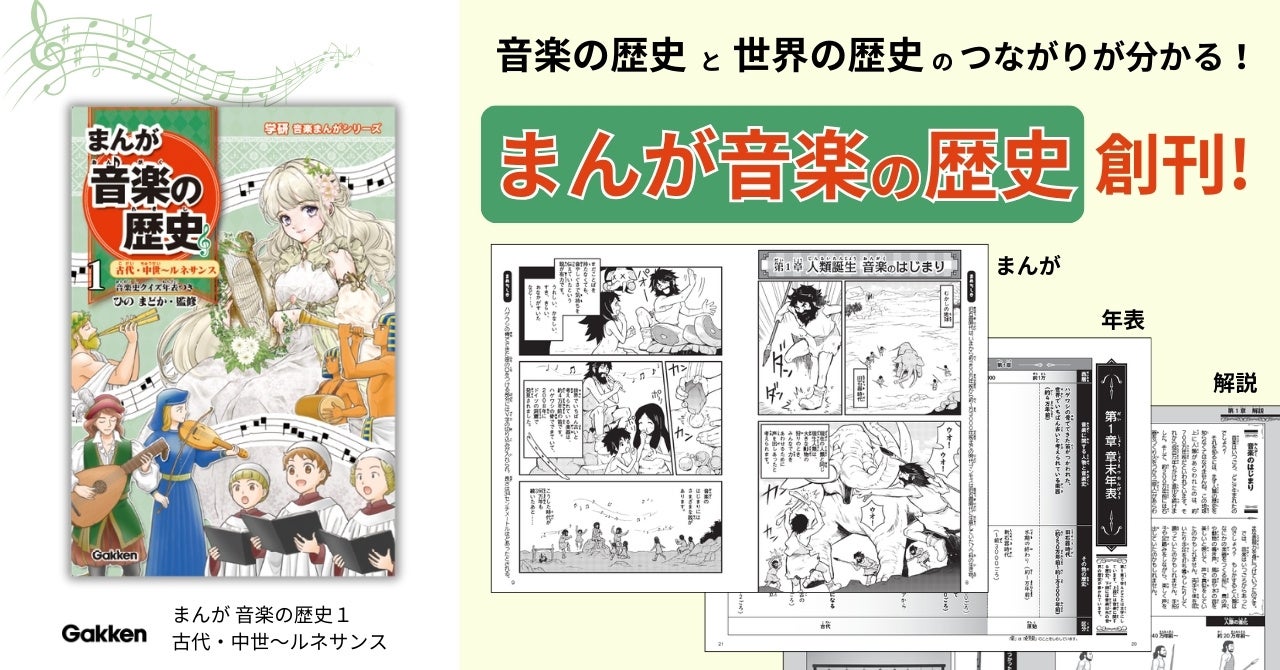 株式会社 学研ホールディングス(東京・品川/代表取締役社長:宮原博昭)のグループ会社、株式会社 Gakken(東京・品川/代表取締役社長:南條達也)は、2024年12月12日(木)に「まんが 音楽の歴史」を創刊し、シリーズ第1巻である『まんが 音楽の歴史 古代・中世~ルネサンス』を発売いたしました。