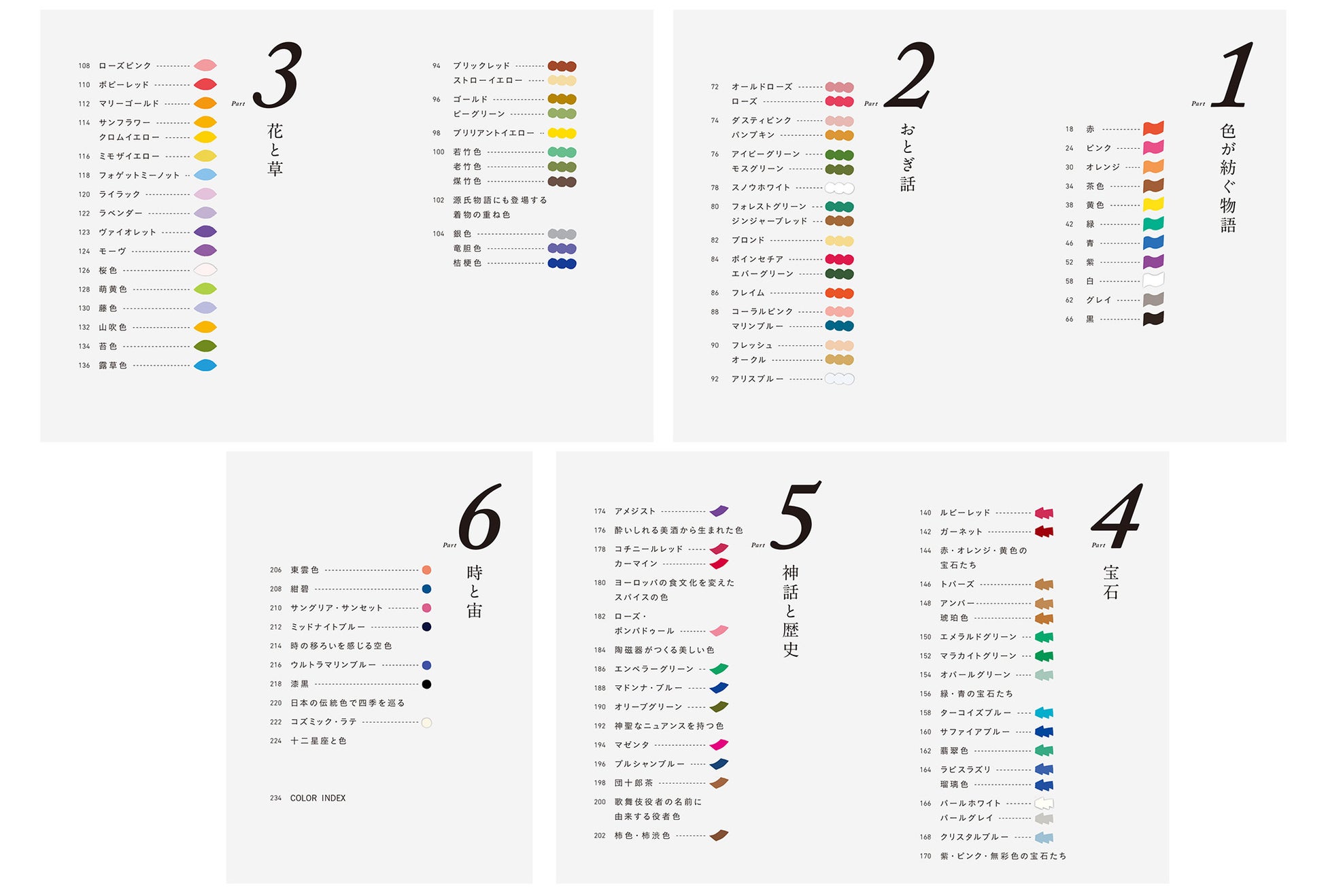 誰もが知る「赤」「青」「緑」から、ロマンチックな名前を持つ色まで、普段何気なく見ている色には、その色名の由来、成り立ち、そして人々の感情が込められた物語が秘められています。本書は、そんな心惹かれる150色の物語を収録した、小さな知識と物語の本です。「勿忘草の色」の悲しい恋物語、騎士の守り色だった「ガーネット」、美女と野獣に登場した薔薇の「ピンク」……など、おとぎ話、花と草、宝石、神話などにまつわる、読むほどに色の世界にときめく物語を収録しています。美しい色の名前と、それにまつわる短編ストーリーを掲載しており、コーヒーや紅茶を飲みながら楽しむ、週末のご褒美読書にぴったりの一冊です。
