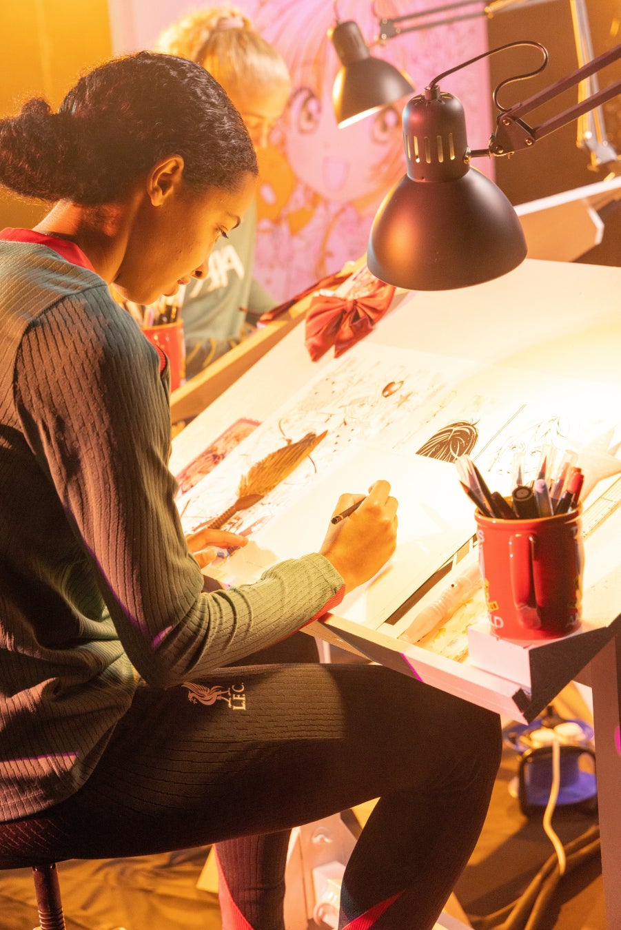 リバプールFCウィメンの3選手が、「もしピッチで魔法が使えたら?」というテーマで漫画制作に挑戦しました。長野風花選手、グレイス・フィスク選手、ハンナ・シルコック選手が、自ら考えた魔法のアイデアをイラストにし、さらに漫画家の遠山えま氏がその世界観を発展させていきます。
