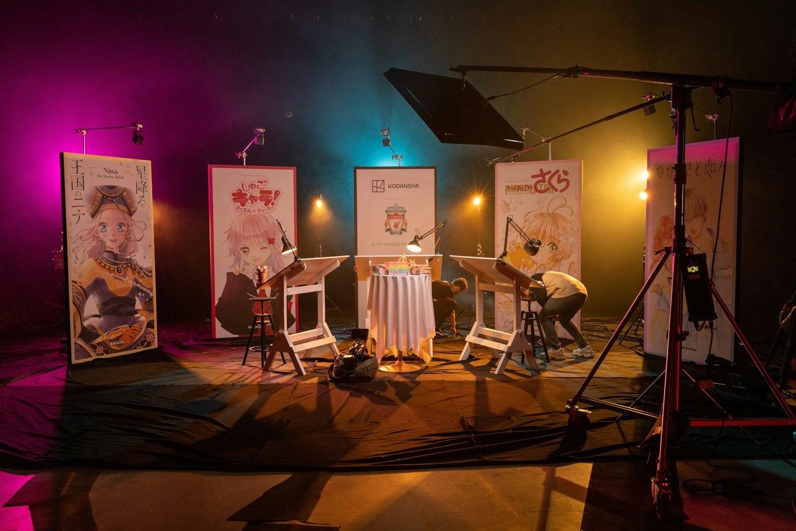 スタジオには『カードキャプターさくら クリアカード編』(CLAMP)、『ゆびさきと恋々』(森下suu)、『星降る王国のニナ』(リカチ)、『しゅごキャラ! ジュエルジョーカー』(PEACH-PIT)など数々の名作漫画のパネルが並び、まるで異世界に迷い込んだかのような空間に。そんな空間に刺激を受けた3選手は、実際に「魔法」をイメージしながらアイデアを膨らませます。
