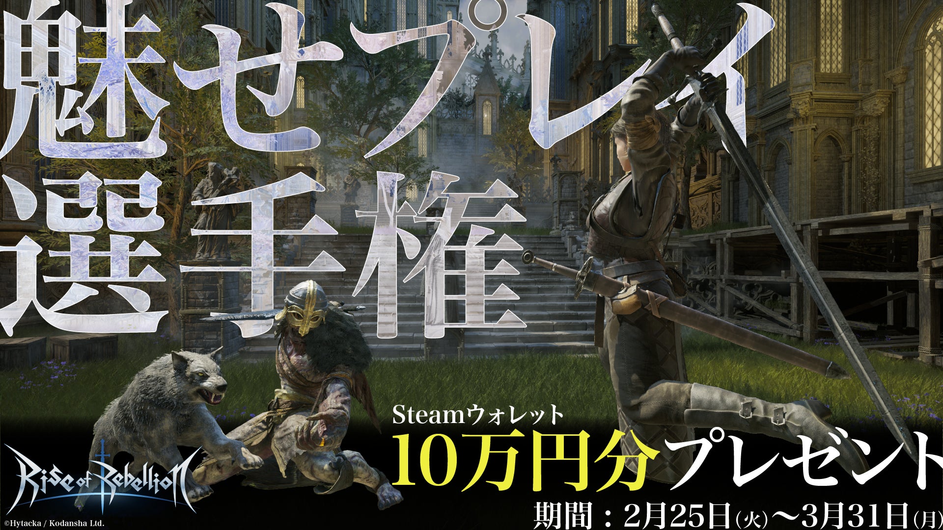 講談社ゲームクリエイターズラボは、Hytacka(ハイタカ)氏による剣技と「地罰」の緊張感が織りなすシングルプレイ専用3DアクションRPG『Rise of Rebellion』の体験版配信【2025年2月25日(火)】に合わせて、Steamウォレット10万円分プレゼントの「魅せプレイ選手権」を開催いたします!