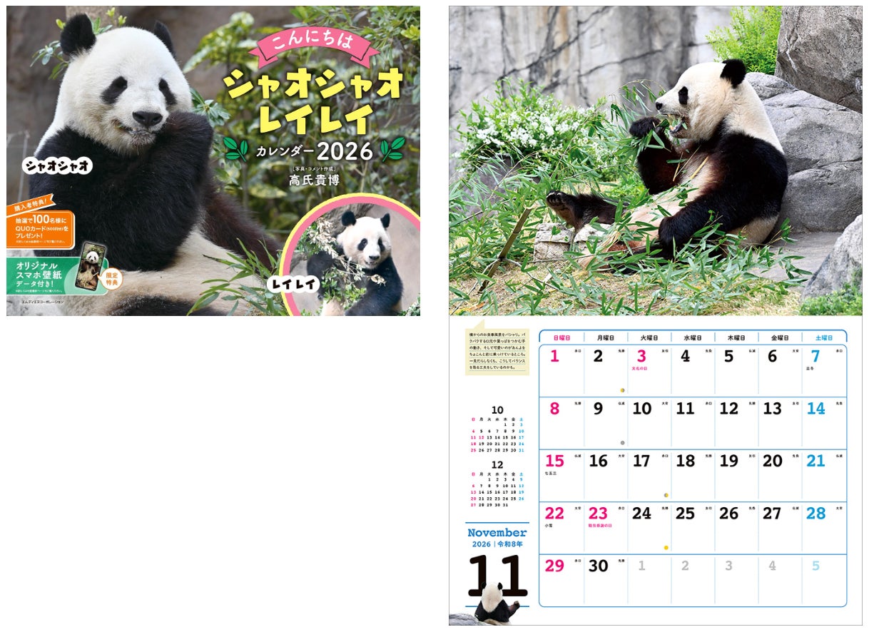 ■双子パンダの愛らしい姿をとらえた『2026 こんにちはシャオシャオ・レイレイカレンダー』