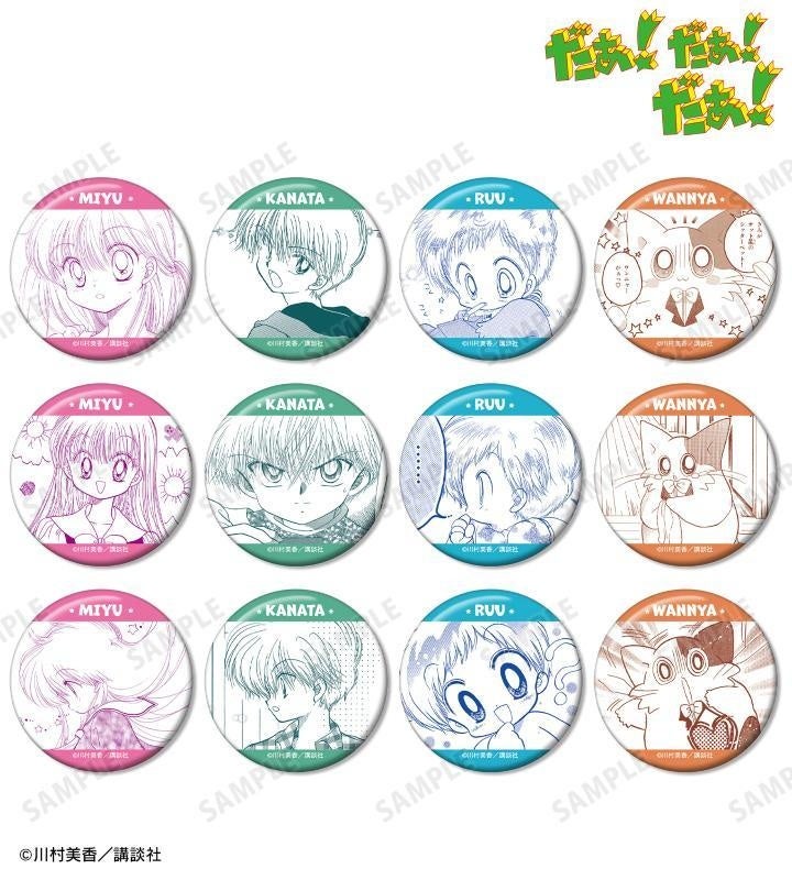 光月 未夢、西遠寺 彷徨、ルゥ、ワンニャーの原作イラストを缶バッジに仕上げました。