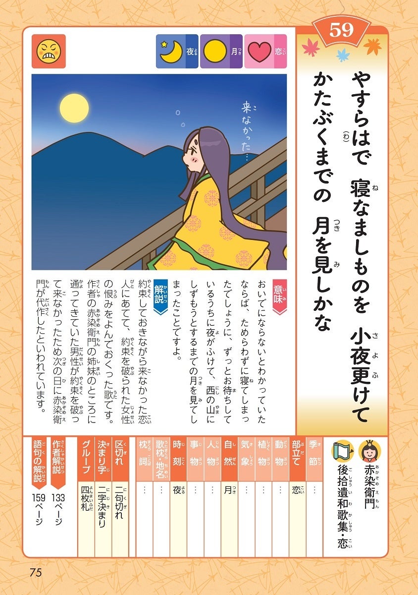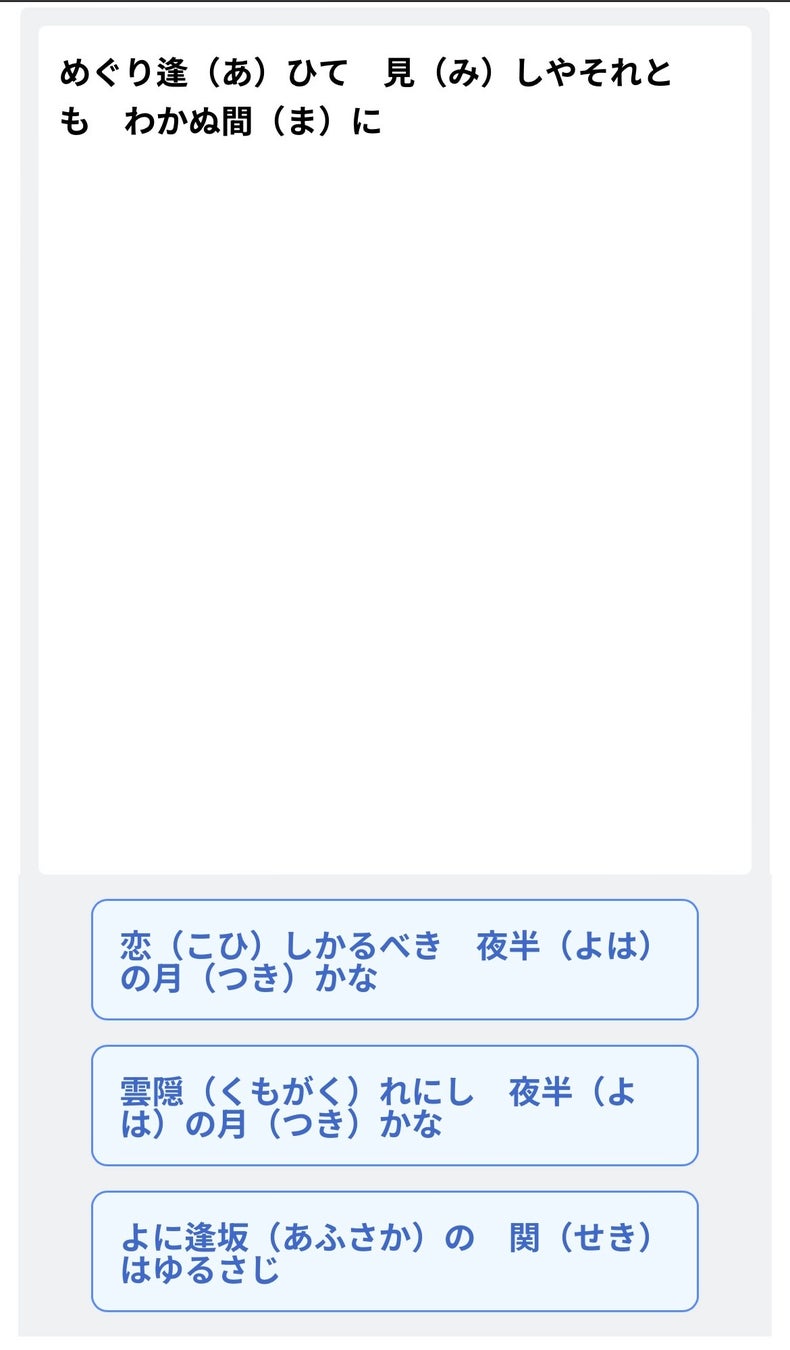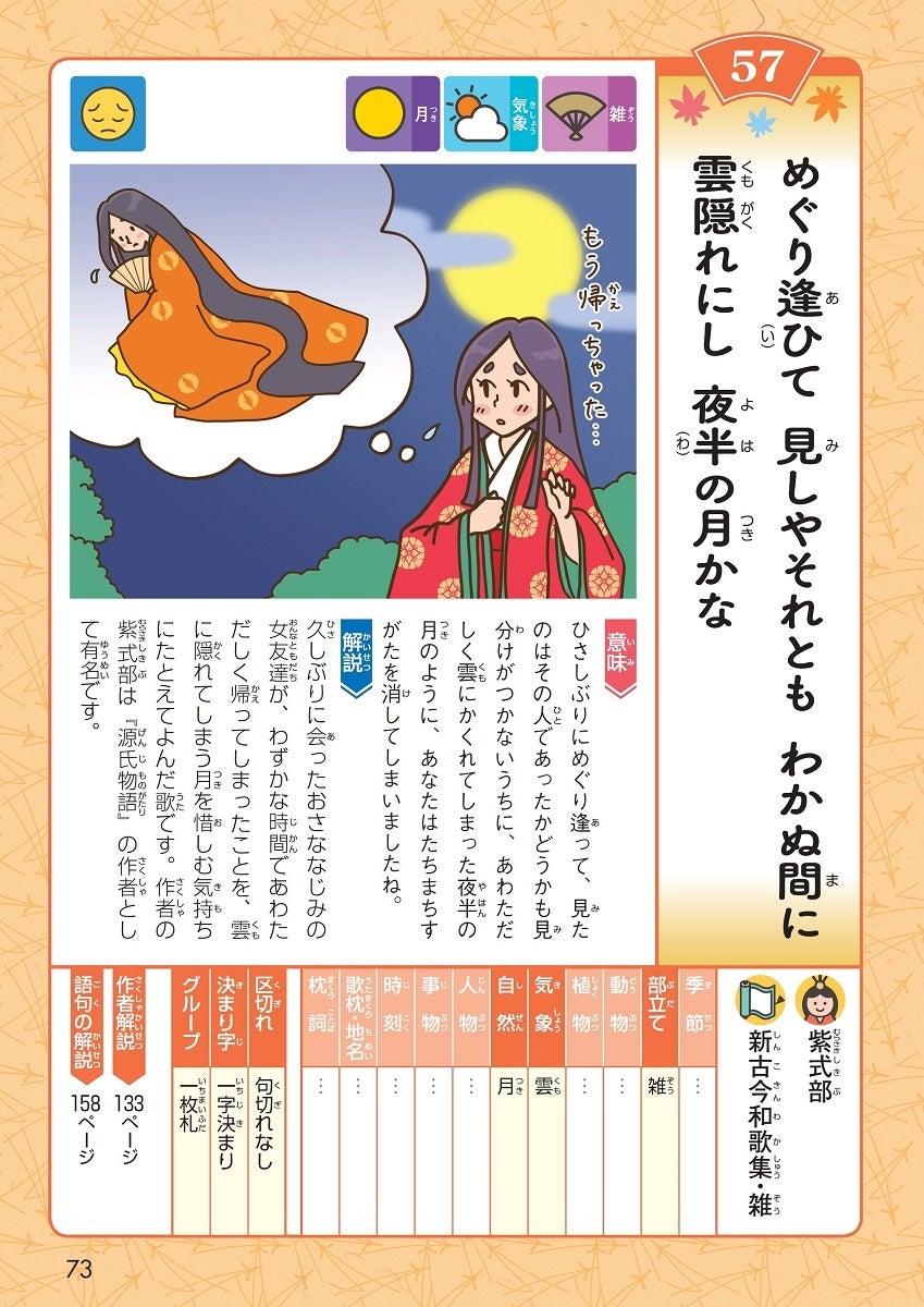 カードゲームで属性や所有アイテムを確認しながらプレイする感覚で、百人一首を攻略してしまいましょう。