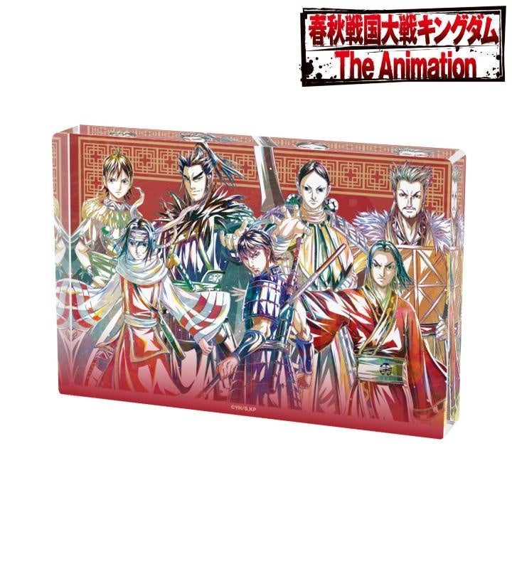 信、嬴政、河了貂、羌瘣、桓騎、慶舎、紀彗のイラストを新たなタッチで魅力的に表現し、アクリルブロックに仕上げました。