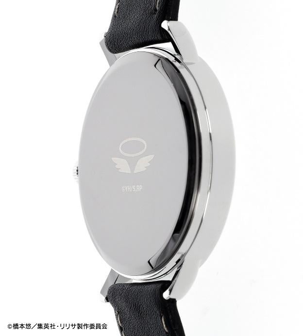時計のインデックス部分をリリエルらしい十字架や羽のモチーフでデザインし、落ち着いた銀色で立体的に配置しました。
