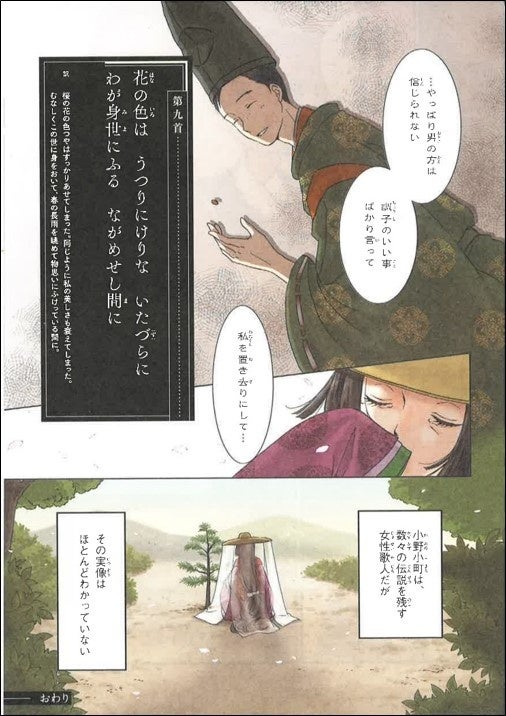 オールカラーのマンガで読める百人一首。音声付きの動画も見られて楽しく学べる!