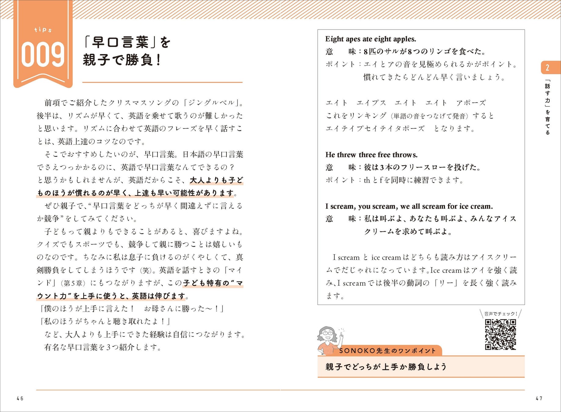 ▲二次元コードつきのページは著者の音声でも確認できます。