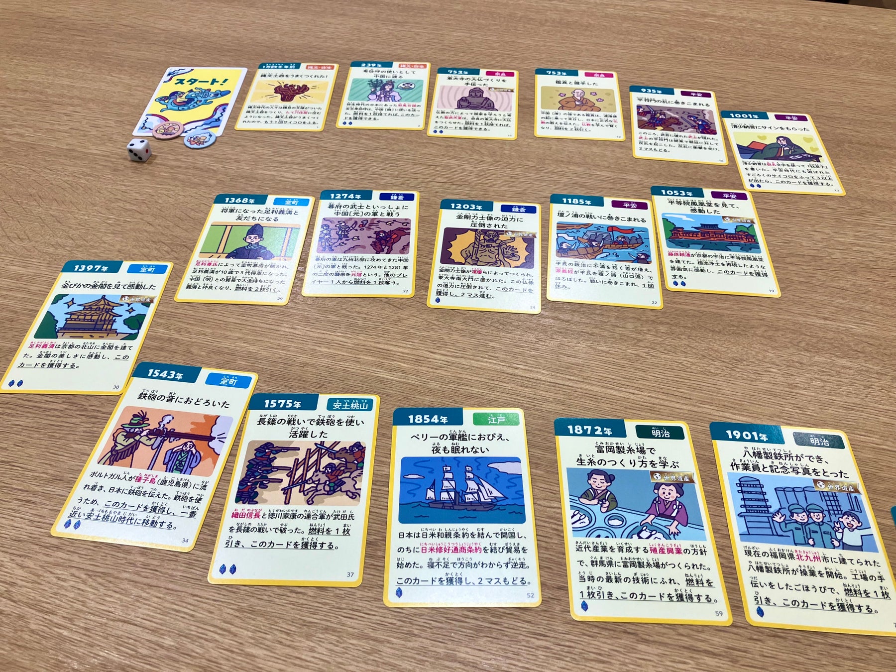 ・すごろくと神経衰弱ゲームは、歴史の知識ゼロの小2娘でも盛り上がりました。