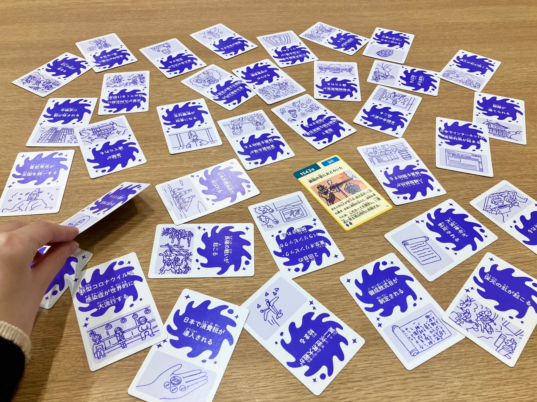 同じ時代のカードをペアにして獲得できる、神経衰弱風ゲームです。