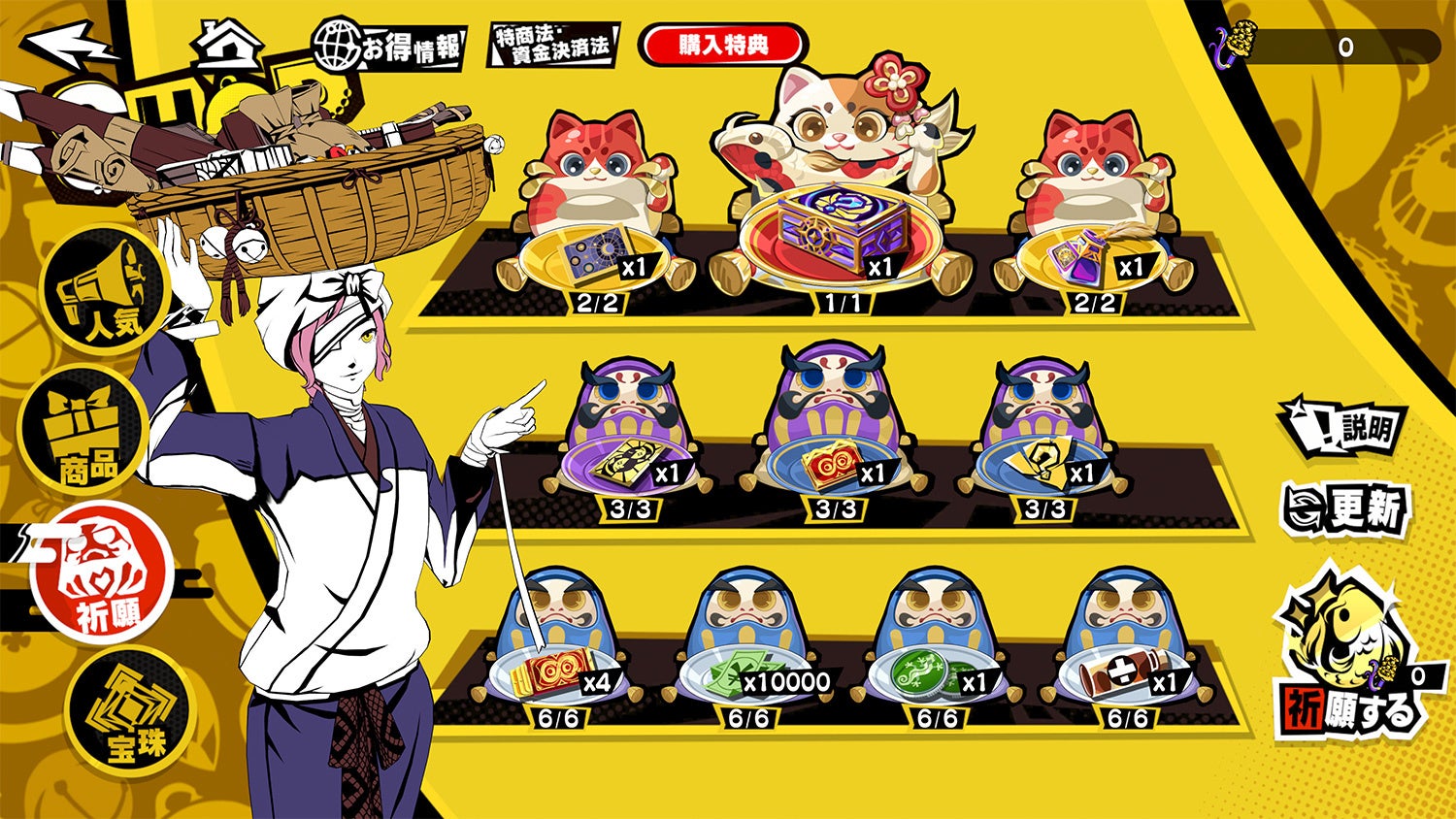 新たな運試しコンテンツとして“祈願”が登場! 「神楽鈴」を使用してチャレンジすると、“怪ドルドラフト”登場キャラクターの認知結晶が 選択可能な新アイテム「★5結晶選択箱」などの豪華報酬が獲得できます。
