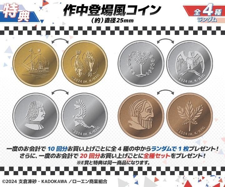 一度のお会計で10回分ご購入ごとに特典作中登場風コイン(全4種)の中からランダムで1枚、20回分ご購入で全種セットプレゼント!