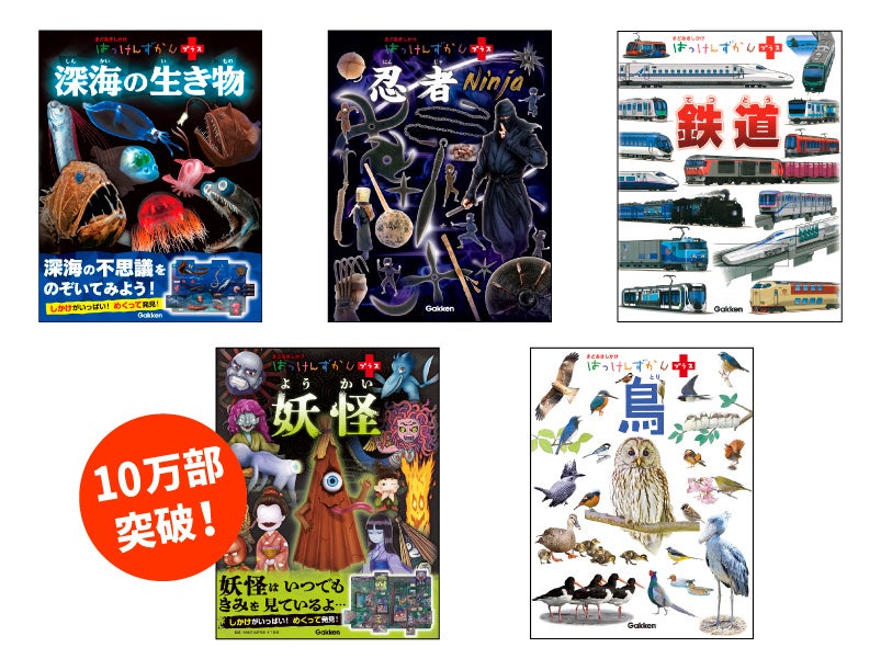 『はっけんずかん』シリーズは、ページにある“めくるしかけ”を開くことで、さまざまな「はっけん」ができる幼児向けの図鑑。定番テーマで図鑑デビューにぴったりの『はっけんずかん』からスタートし、お子さんの“好き”を追求する『はっけんずかんプラス』、さらにさまざまなものごとの仕組みがしかけでわかる『めくって学べる』シリーズを加え、累計250万部を超えるロング&ベストセラーとして親しまれています。