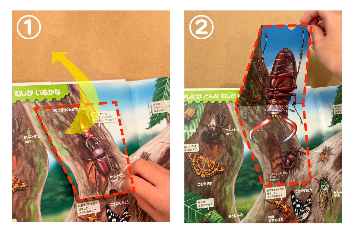 各ページにたくさんのしかけがあり、めくるだけでも楽しいのでまだ字が読めない2歳さんでもじゅうぶんに楽しむことができ、年齢が上がればしかけの解説や充実した写真解説ページを読み、学ぶことができます。さらにしかけには「このあとどうなるかな?」「なにがおこるかな?」など必ず問いが付いているので、考えながら読む習慣が身に付きます。