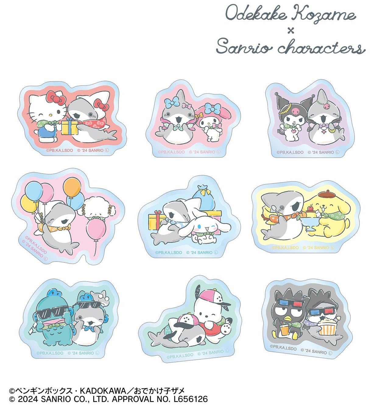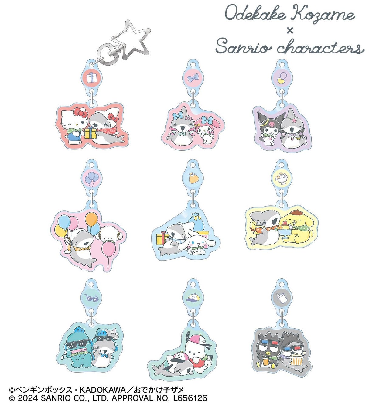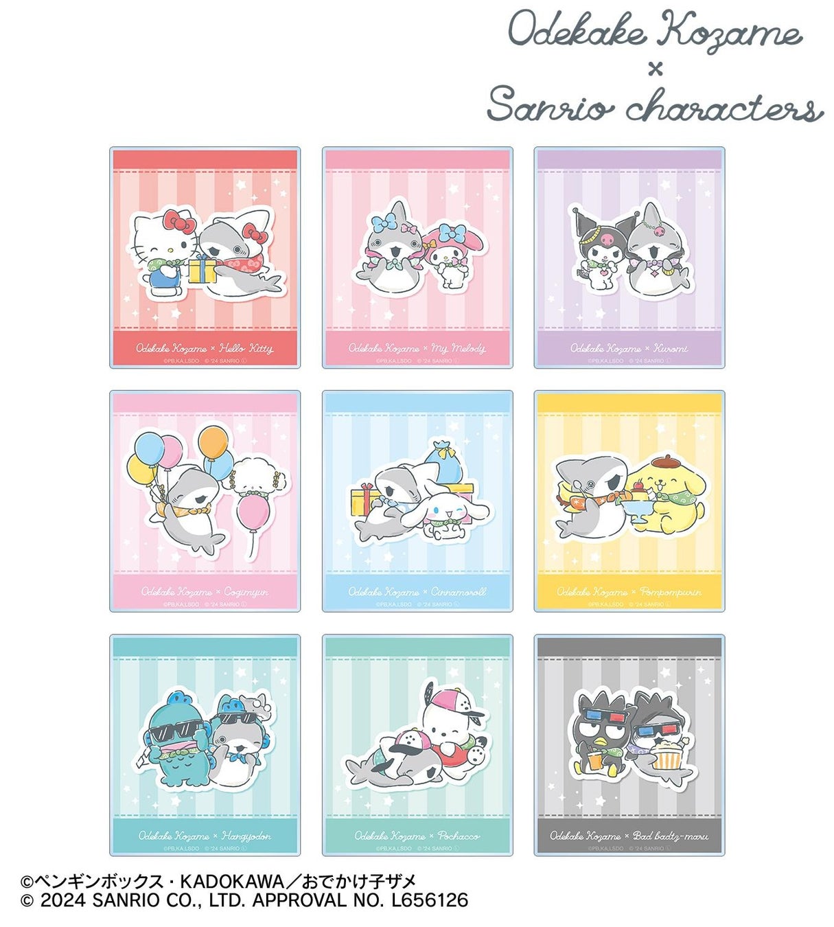 種類 :全9種(おでかけ子ザメ×ハローキティ、おでかけ子ザメ×マイメロディ、おでかけ子ザメ×クロミ、おでかけ子ザメ×こぎみゅん、おでかけ子ザメ×シナモロール、おでかけ子ザメ×ポムポムプリン、おでかけ子ザメ×ハンギョドン、おでかけ子ザメ×ポチャッコ、おでかけ子ザメ×バッドばつ丸)
