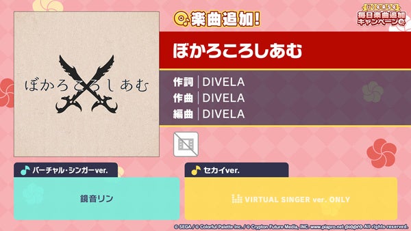 著作権表記:© SEGA / © Colorful Palette Inc. / © Crypton Future Media, INC. www.piapro.net All rights reserved.