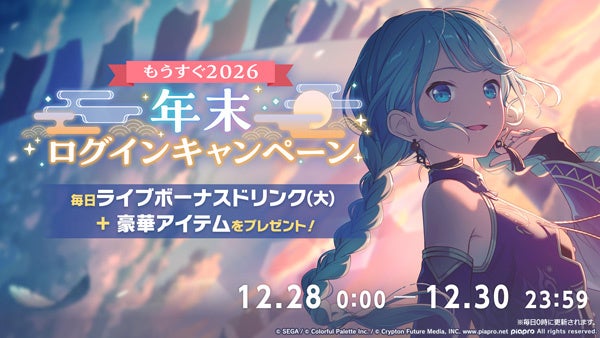 株式会社セガ(本社:東京都品川区、代表取締役 社長執行役員COO:内海州史)と株式会社Colorful Palette(本社:東京都渋谷区、代表取締役社長:近藤裕一郎)は、iOS/Android向けリズム&アドベンチャー『プロジェクトセカイ カラフルステージ! feat. 初音ミク(以下、プロジェクトセカイ)』について、2025年12月30日(火)より、「行く年来る年毎日楽曲追加キャンペーン」を開催いたします。また、2025年12月28日(日)より、「[もうすぐ2026]年末ログインキャンペーン」を開催いたしました。