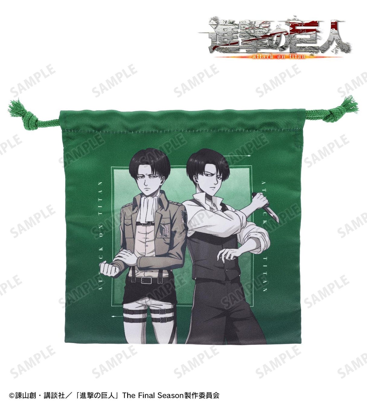 エレン、リヴァイの描き下ろしイラストを巾着に仕上げました。
