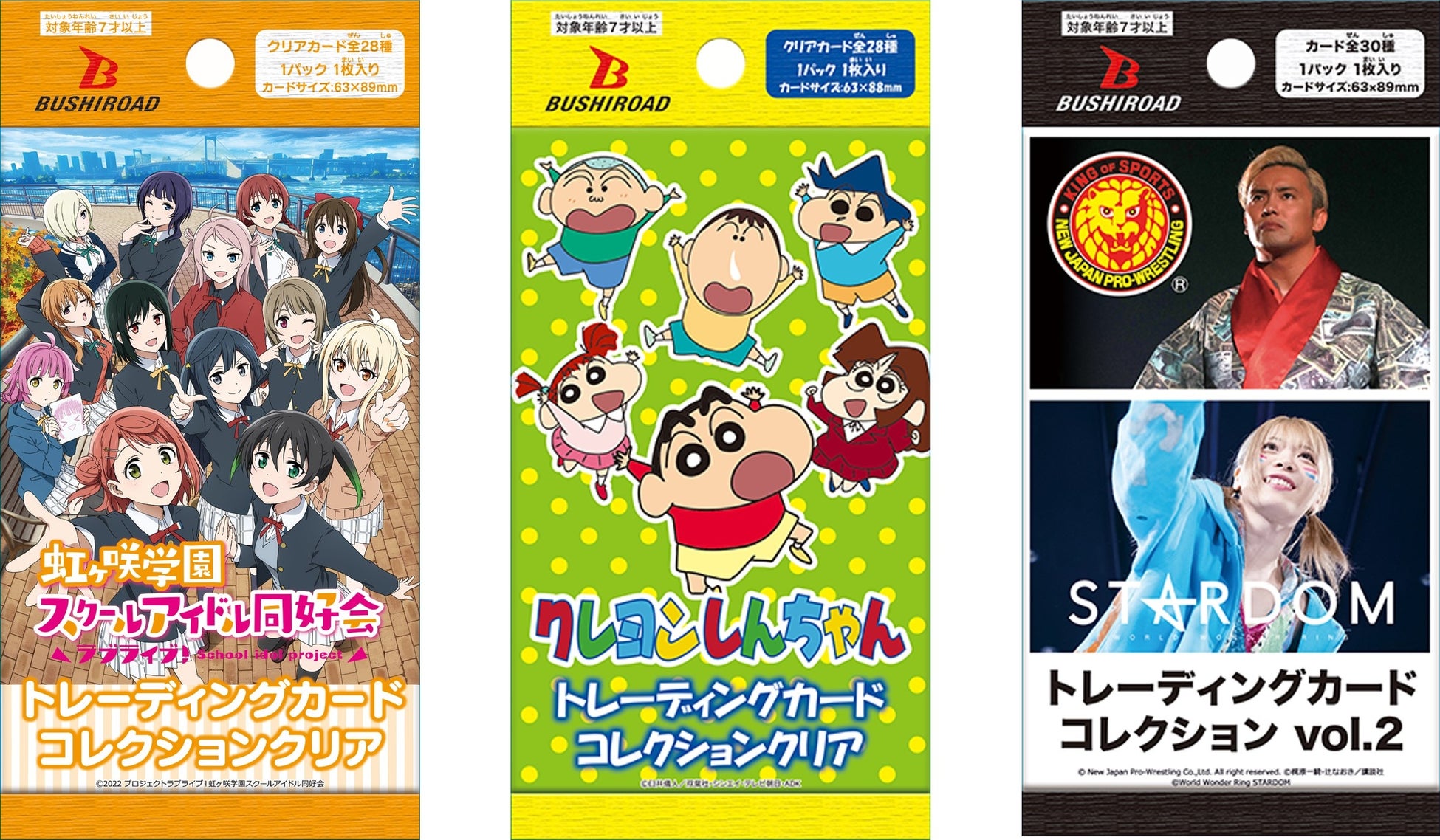 今回はクリア素材を使用した透明感のあるカードの『ブシロード トレーディングカード コレクションクリア』から2種、両面印刷の仕様の『ブシロード トレーディングカード コレクション』から1種の計3種が同時発売です!
