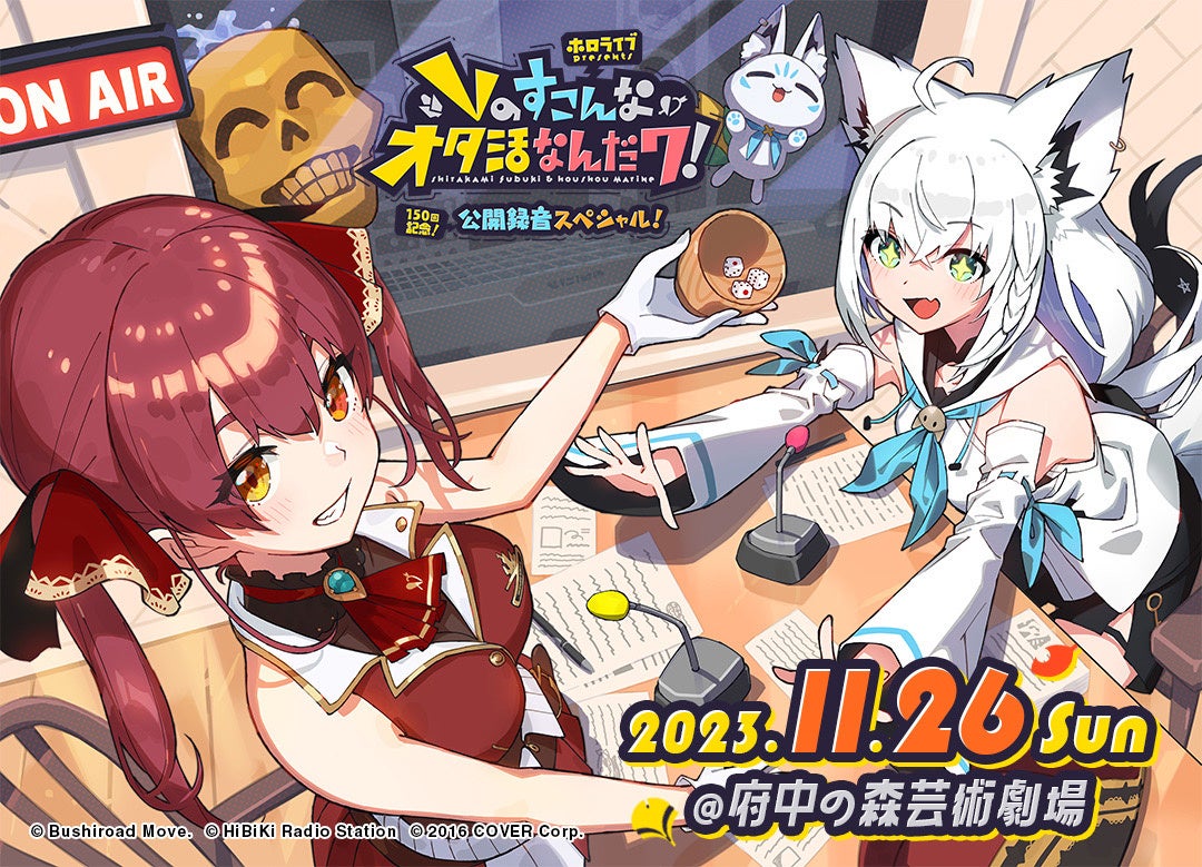 「響 ‐HiBiKi Radio Station‐」にて制作している、「ホロライブ」所属のVTuber「白上フブキ」「宝鐘マリン」2名による冠番組、「Vのすこんなオタ活なんだワ!」公開録音イベント第二弾の開催が決定いたしました。