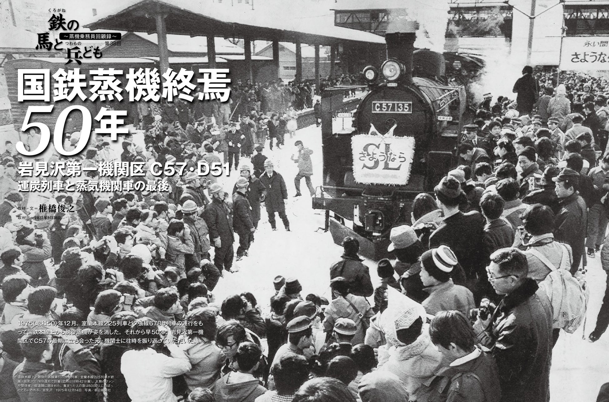 究極のライト・パシフィックC57概論/鉄の馬と兵ども 国鉄蒸機終焉50年 岩見沢第一機関区C57・D51/昭和50年11月鉄道少年最後の秋/ドキュメント72時間 特別編 国鉄蒸機牽引最終列車/現役蒸機 最後の1年 昭和50年を振り返る/先達の轍 進駐軍、サプライズテスト、嫌われていたC62 2/履歴簿 C57 147/新聞社が見た鉄道 主役交代のとき/C57 1全般検査レポート4/公園機関車を撮る D51 95&D51 1149/「SL人吉」58654号機、動態ほか