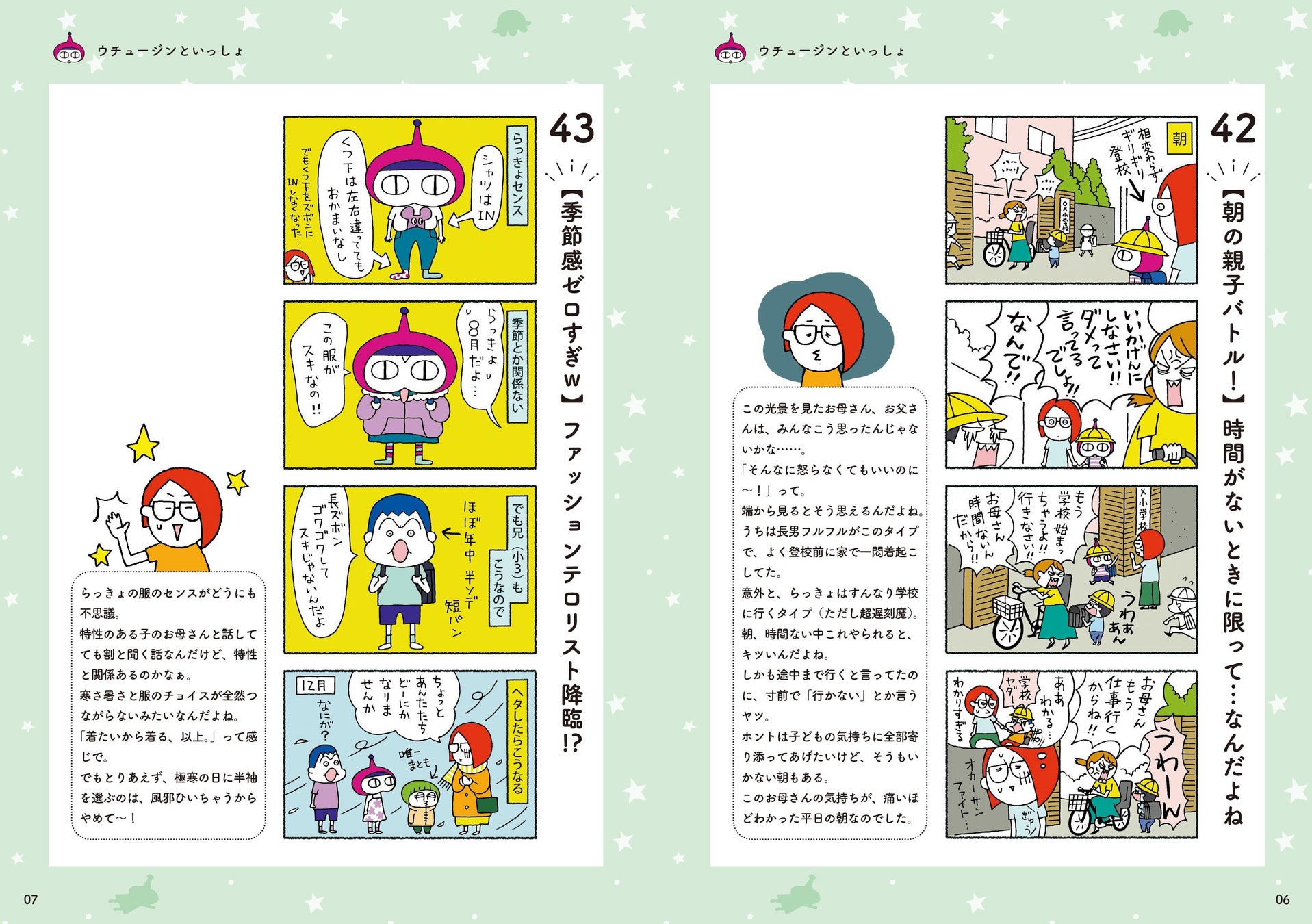 3人きょうだいの真ん中っ子らっきょが、ある日突然、自分はウチュージンだとカミングアウト⁉ 週1で小学校内の特別支援学級&週3で放課後デイに通うらっきょと、いっしょに暮らしている家族5人のお話。